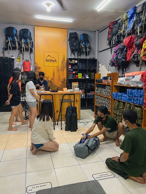 Nona Petualang merupakan jasa persewaan alat outdoor dan camping terbesar, terlengkap dan terbanyak di Surabaya. Lokasinya cukup strategis, yaitu di Jl. Raya Semampir No.74C Medokan Semampir Sukolilo Surabaya. Tidak jauh dari UNTAG, ITATS, STESIA, ITS, STIKOM, Gunawangsa Merr dan Transmart Rungkut.